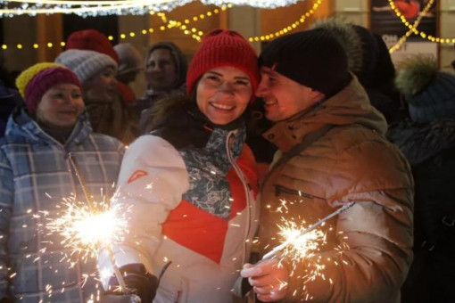 Бенгальские огни, салюты и шампанское под главной городской елкой. Вместо застолья дома под бой курантов тысячи новосибирцев пришли праздновать наступление нового 2020 года на площадь Ленина.