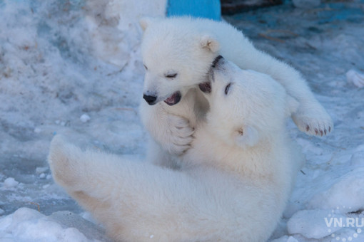 Ровно год исполнился белым медвежатам Норди и Шайни. Озорники заметно окрепли, сотрудники зоопарка называют двойню белым пушистым ураганом. Они играют в футбол снежками, уплетают взрослую порцию рыбы, но все еще сосут материнское молоко.