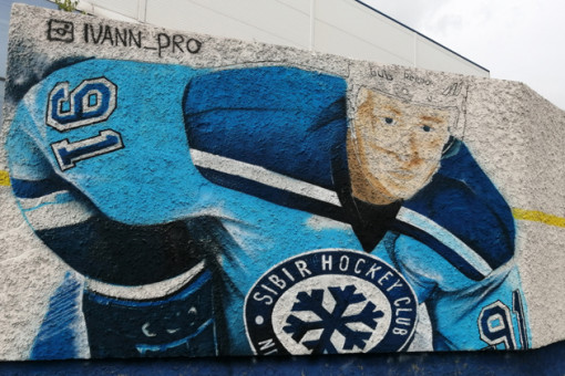 Граффити с изображением известного хоккеиста и обладателя Кубка Стэнли в форме хоккейного клуба «Сибирь» рисуют на стене возле ЛДС «Сибирь» двое художников, один из них – известный граффитист Иван Ильющенко. Граффитисты закончили рисунок за день.