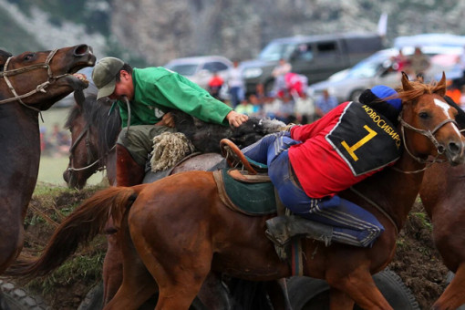 Козлодрание, или кок-бору - популярная азиатская конно-спортивная игра. Две команды по четыре всадника посреди огромного поля, задача – забить как можно больше голов в ворота соперника. Только вместо мяча – тушка обезглавленного козла весом 35 килограммов.