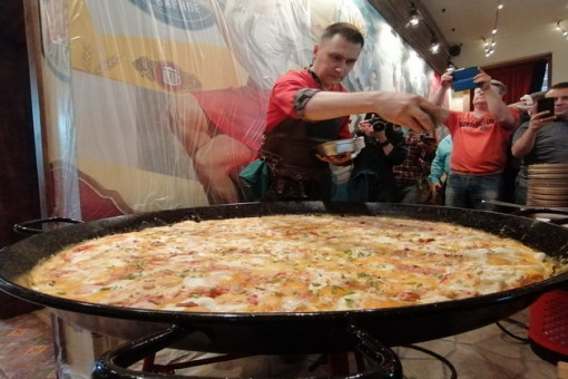 300 яиц, поджаренных на сале, с помидорами и зеленью с удовольствием отведали несколько десятков новосибирцев. Гигантскую яичницу презентовали повара во время проведения гастрономического праздника Дня бычка 24 мая.