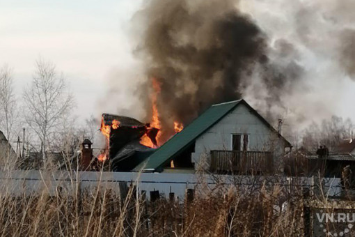 Двухэтажный дом из бруса вспыхнул вечером 23 апреля в селе Боровое Новосибирского района. Живущую в доме бабушку успели спасти, но в огне сгинули дом и все дворовые постройки кроме бани. Мощный пожар трижды тушили при помощи пожарной авиации.