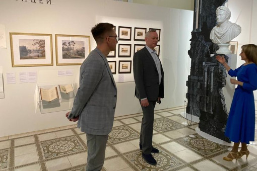 В рамках мероприятий музейной ночи 17 мая губернатор Новосибирской области Андрей Травников посетил открытие выставки в Краеведческом музее «Поэт и царь», посвященную жизни и творчеству Александра Сергеевича Пушкина.