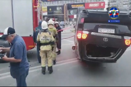 Боковое столкновение двух автомобилей завершилось кувырком в воздухе на перекрестке улицы Ленина и Вокзальной магистрали.