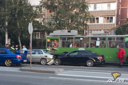 Мерседес, Тойота и Порш затормозили об тягач вечером 30 июня по пути на площадь Калинина. На участке от Сухарной до Холодильной паровоз из машин во втором ряду объезжали несколько часов.