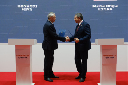 Договор о сотрудничестве между ЛНР и Новосибирской областью подписали в Санкт-Петербурге Андрей Травников и Леонид Пасечник.
