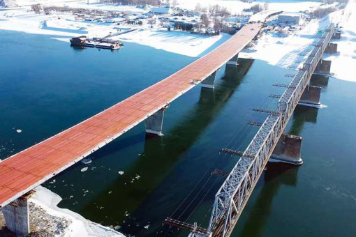 Более 700 погонных метров конструкции весом больше 9 тонн установили на высоте 13 метров над водой. Весь процесс надвижки моста занял один год.