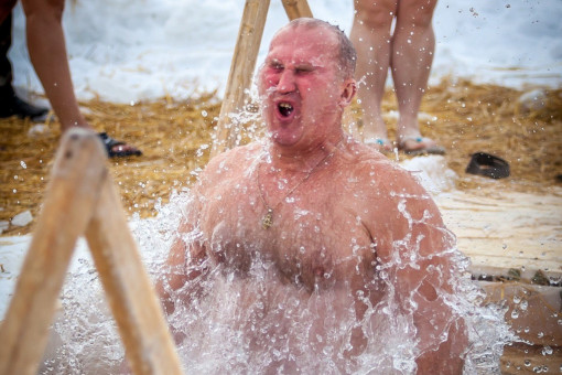 Спасатели муниципального аварийно-спасательного отряда Новосибирска начали пилить лед и вырезать крестообразные купели. Первую прорубили в микрорайоне «Затон».