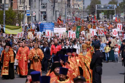 В воскресенье, 21 мая, верующие отмечают День памяти святых равноапостольных Кирилла и Мефодия. Из Вознесенского кафедрального собора до храма Александра Невского прошел массовый Крестный ход, который состоялся впервые с 2019 года после пандемии.