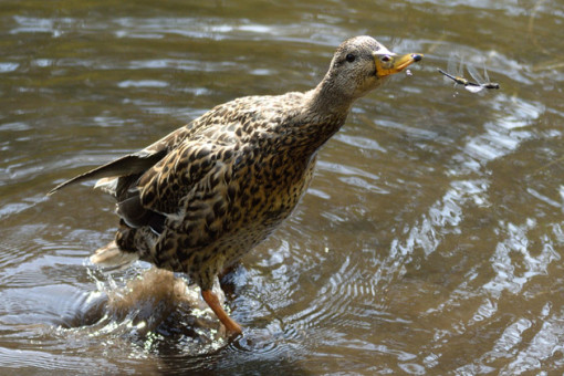 Пруд на притоке реки Зырянка в Новосибирске стал местом пиршества диких уток. С десяток птиц устроили настоящую охоту на стрекоз, у которых сейчас идет лёт. Утки охотились азартно и результативно, забыв про любую другую добычу.