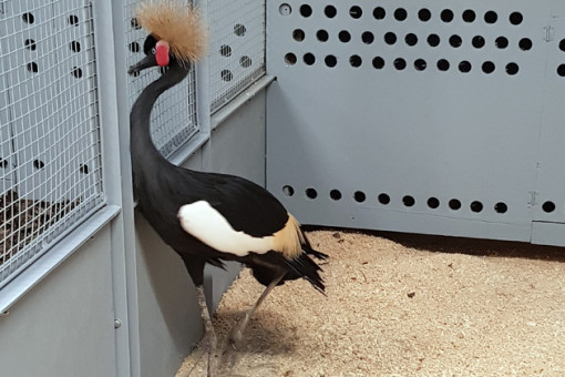 В Новосибирский зоопарк имени Ростислава Шило из Казани доставлена самка венценосного журавля. Наиболее характерная черта птицы — большой золотистый хохолок, расположенный наподобие короны.