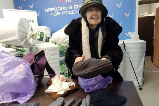 89-летняя Тамара Петровна не первый раз приходит в отделение президентского движения Народный фронт в Новосибирске. Женщина вяжет для участников СВО теплые носки и шапки, материальную помощь в размере 2000 рублей ей оказали йоги из Академгородка.