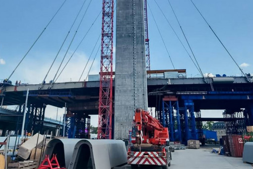 Группа «ВИС» ведет работы по монтажу вантовой системы на 114-метровом пилоне строящегося мостового перехода через реку Обь.