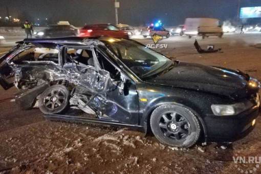 Страшная автомобильная авария произошла в Новосибирске: Honda Accord лоб в лоб влетела в Toyota Mark II. Двое водителей и пассажир госпитализированы с тяжелыми травмами, еще один пассажир погиб на месте, сообщает группа пропаганды Госавтоинспекции города. МАСС опубликовала видео с места аварии.