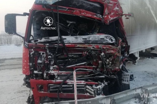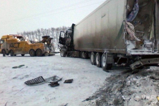 Крупная авария с участием трех большегрузов произошла на трассе М-52 в районе поселка Безменово. Удар лоб в лоб был настолько сильным, что одному из тягачей сплющило кабину.