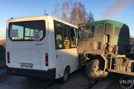 Маршрутка №45 и бетономешалка стали участниками аварии на улице Выборной в Новосибирске. В момент столкновения в микроавтобусе находились пассажиры.