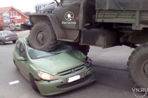 Грузовик «Урал», буксировавший автокран, случайно наехал колесом на хэтчбек Peugeot 207. В аварии чудом никто не пострадал, а малолитражка оказалась раздавленной, сообщает «Автоспас Новосибирск».