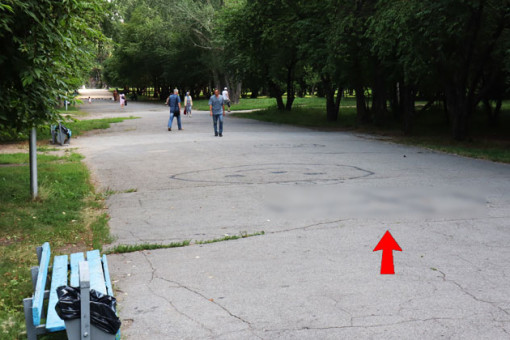 Трехметровая свастика, нарисованная черной краской, появилась на главной аллее сквера Сибиряков-Гвардейцев в Ленинском районе Новосибирска. Изображение нанесено прямо на асфальт, рядом изображена ухмыляющаяся рожа с характерными усиками.