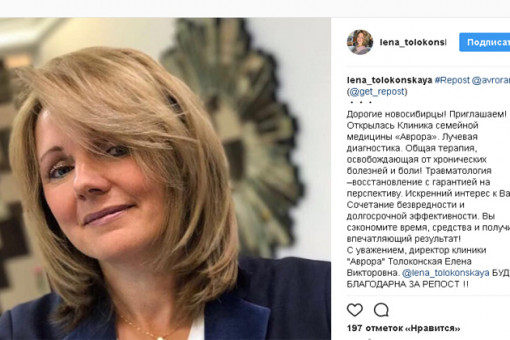 Елена Толоконская, дочь экс-губернатора Новосибирской области и главы Красноярского края Виктора Толоконского, объявила об открытии собственной клиники в Новосибирске.