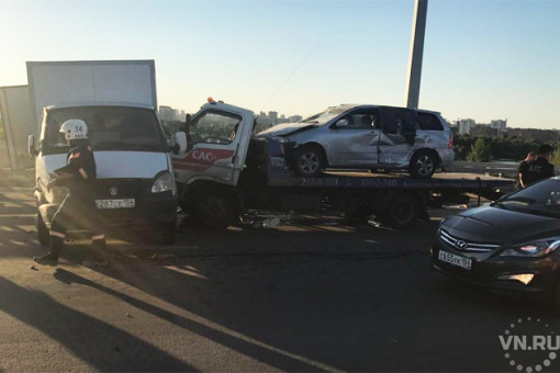 Крупная авария произошла на Бугринском мосту — эвакуатор Hyundai столкнулся с «ГАЗелью», есть пострадавшие, сообщает группа пропаганды Госавтоинспекции Новосибирска.