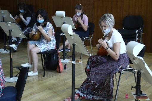 В защитных масках к репетициям приступили артисты Новосибирской филармонии, несколько месяцев просидевшие по домам из-за коронавируса. Большие коллективы разделили на части, чтобы люди могли держать дистанцию 1,5 метра друг от друга и репетировать в разное время. Первые концерты начнутся уже в начале сентября.