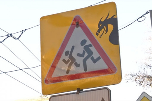 Огнедышащие драконы, пьющие компании, веселые пешеходы. Такие картинки внезапно появились в центре Новосибирска. Причем не на рекламных баннерах, а на табличках дорожных знаков. Журналисты ОТС выясняли, кто и зачем модернизировал металлические щиты.