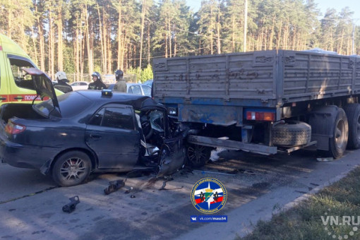 В столкновении иномарки с длинномером в Новосибирске погибла женщина-водитель. Очевидцы происшествия рассказывают, что «руль был практически в спинке сидения», и шансов выжить оставалось немного.