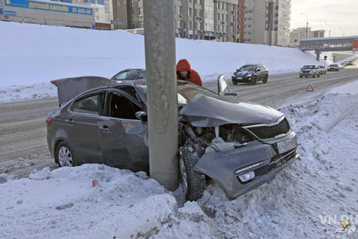 Авария произошла в Центральном районе Новосибирска. Девушка за рулем Kia Rio врезалась в столб, хотя буквально за 10 минут до аварии по улице прошли снегоуборщики, сообщает «АСТ-54».