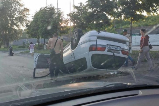 19.06.2023 Toyota Caldina взлетела и приземлилась на Большевистской в Новосибирске после ДТП Авария спровоцировала многокилометровую пробку.