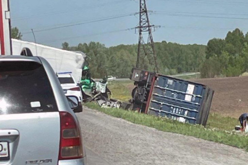 02.06.2023 Два грузовика столкнулись лоб в лоб рядом с деревней Вороново под Новосибирском Один из автомобилей после удара опрокинулся в кювет.