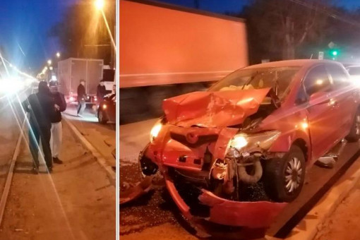 Авария произошла на пересечении Петухова и Бородина в Кировском районе. Машины перегородили трамвайные пути.