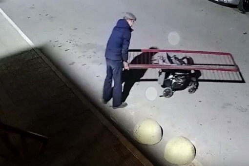 Мужчина средних лет орудует в основном по ночам и увозит металлические конструкции на обычной детской коляске.