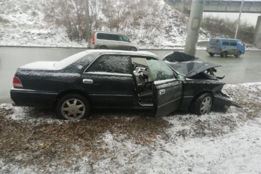 В результате ДТП капот «Тойоты» смяло пополам. Водитель и пассажирка госпитализированы.