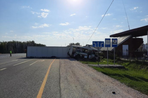 «ПАЗ» столкнулся с фурой на трассе под Чанами возле АЗС утром 5 июля. Водитель автобуса скончался на месте.