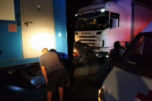 Смертельное ДТП произошло минувшей ночью на трассе Р-254 под Новосибирском. Большегруз Скания начал обгон, но не выдержал безопасного расстояния и смял автомобиль Тойота Камри рядом с другой фурой, ожидающей начала движения перед светофором.