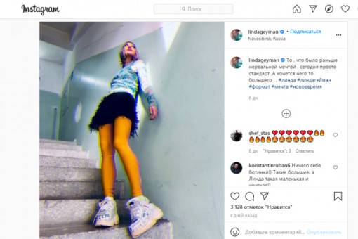 Фотографию с загадочной подписью на фоне типовой стены подъезда выложила в Instagram звезда 90-х певица Линда. Геометка сообщает, что фото сделано в Новосибирске. Фанаты восторженно отметили хрупкость девушки и модные кроссовки.
