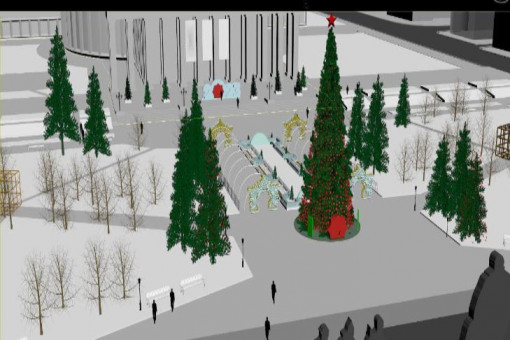 Клумба вместо скандального катка появится на площади Ленина на Новый год-2023, а крыльцо НОВАТа украсят восемь елок в стилистике федеральных округов России.
