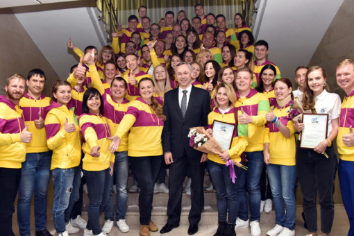 Врио губернатора Новосибирской области Андрей Травников встретился с участниками XIX Всемирного фестиваля молодежи и студентов, выслушал доклады новосибирских делегатов о проделанной работе
