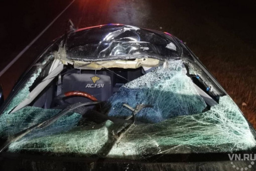ДТП с участием лося произошло в Новосибирской области. На въезде в Барабинск он выбежал на трассу перед автомобилем и погиб, смяв переднюю часть автомобиля.