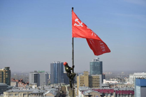 Знамя Победы украсило здание Новосибирского театра оперы и балета 6 мая. Столица Сибири готова торжественно отметить очередную годовщину окончания Великой Отечественной войны.