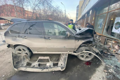 Сбил двух пешеходов на тротуаре и врезался в стеклянную витрину агентства недвижимости автомобиль BMW X5 вечером 12 апреля. Очевидцы рассказали, что немецкий внедорожник двигался по полосе для пассажирского транспорта с огромной скоростью, а до этого обгонял автомобили через две сплошные полосы.