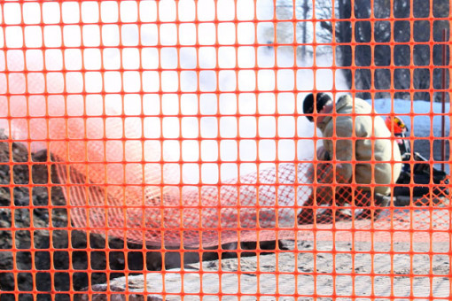 Огненную лошадь из озерного льда в центре Искитима ваяет новосибирец