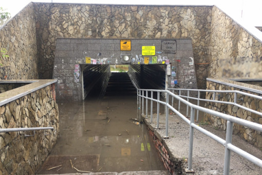 Сильный ливень затопил подземные переходы в Оби Новосибирской области. В местном паблике в социальной сети сообщили, что следует искать обходные пути на работу. Обчане грустно шутят, что уровень воды выше, чем при съемках нашумевшего «Обского городского венецианского карнавала».
