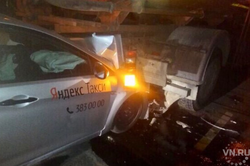 Такси, перевозившее пассажиров, столкнулось с автомобилем коммунальных служб под Новосибирском. Такси искорежено, к счастью, пассажиры не пострадали.