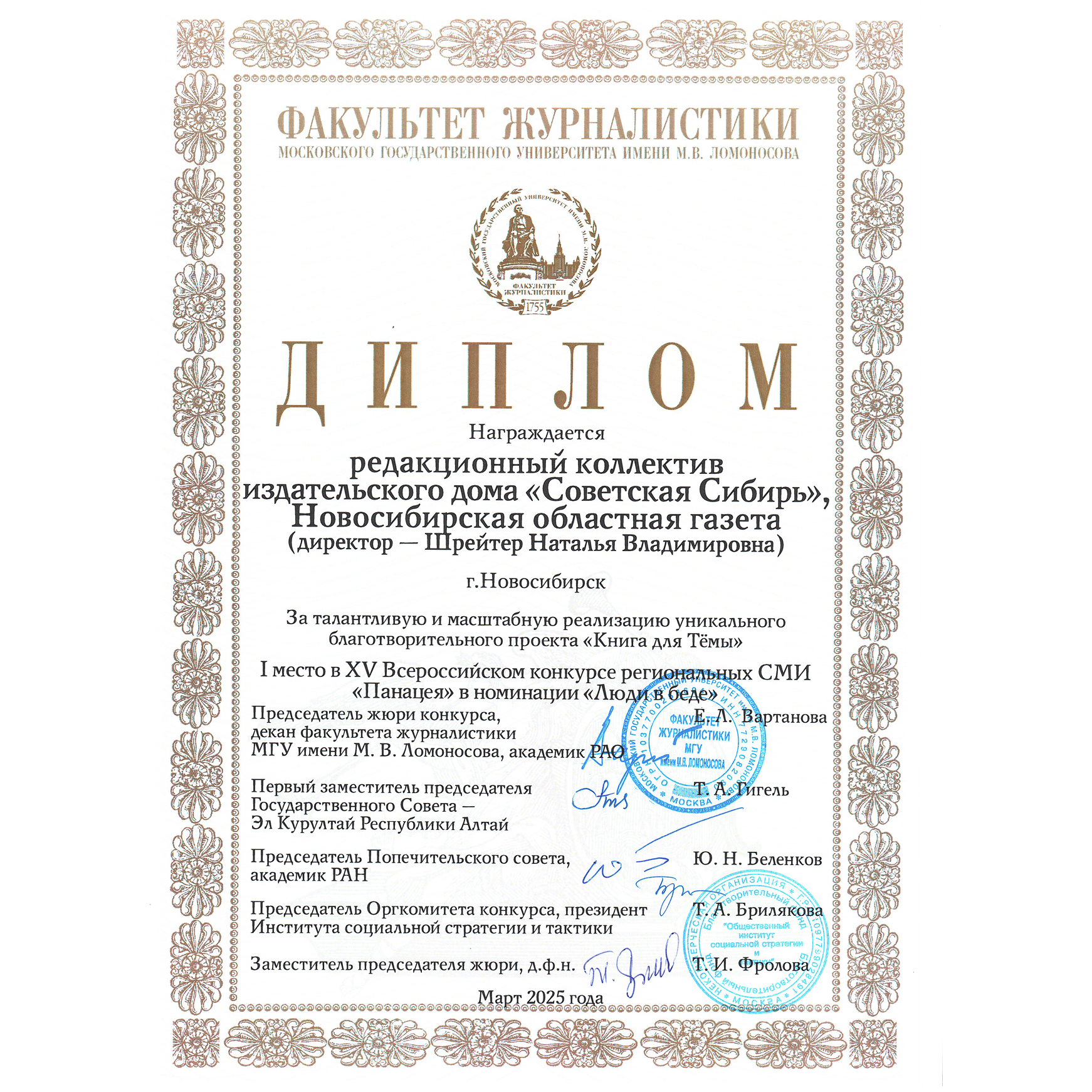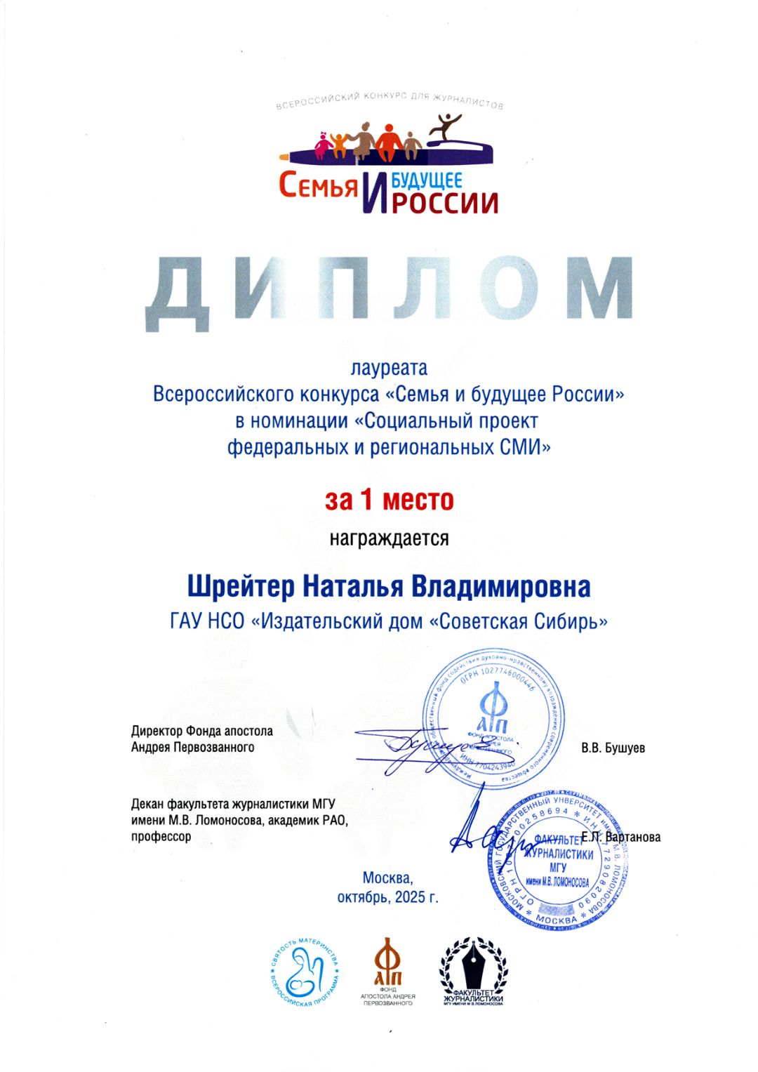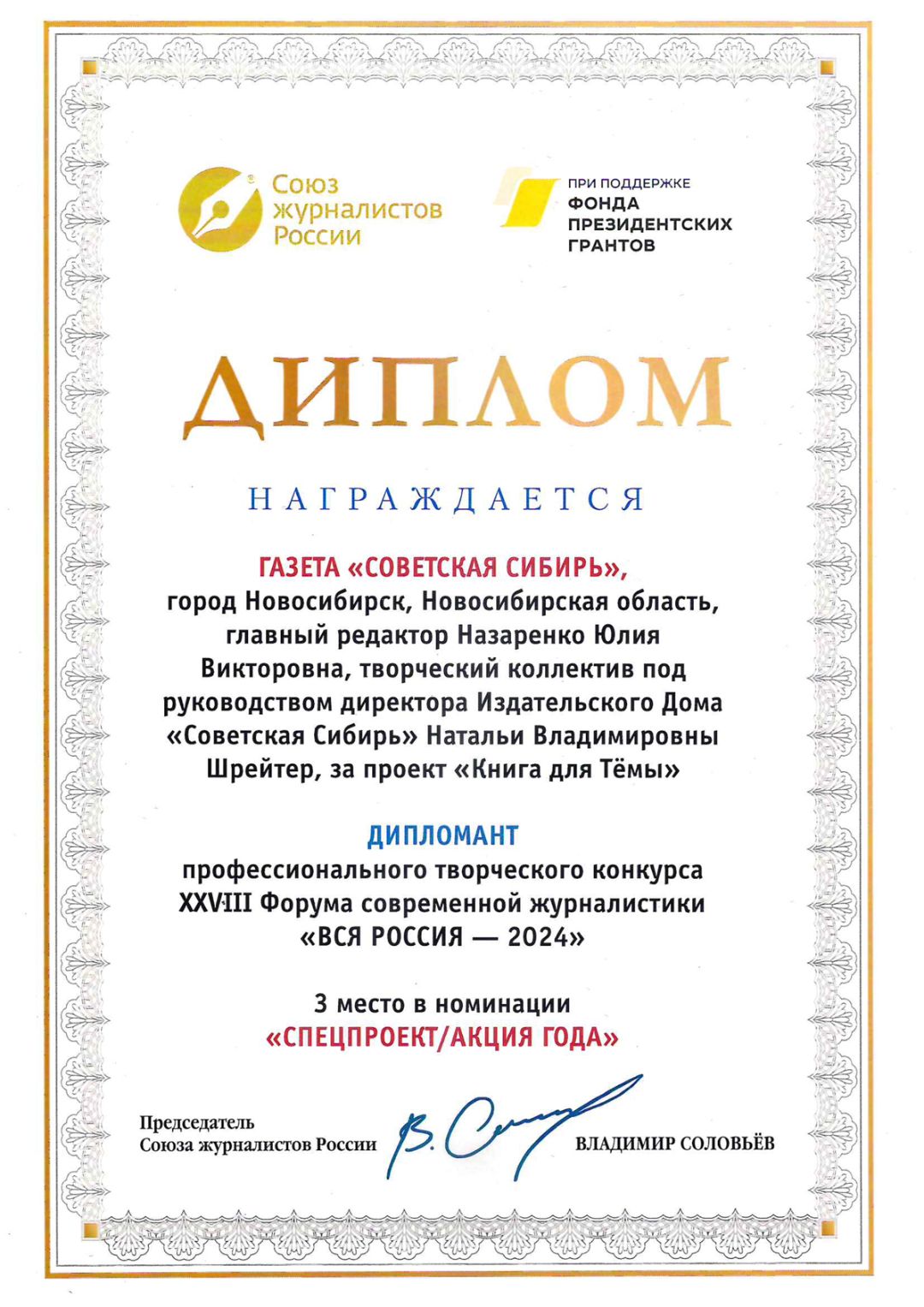 всероссийских профессиональных конкурсов, таких как «Pressзвание», «Правда и справедливость».