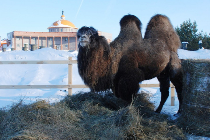 Двугорбый верблюд с гордым именем Фараон только по происхождению обитатель монгольских степей: пять лет своей жизни он провел в Сибири и привык к снегам и морозам. Он не доставляет сотрудникам никаких проблем, питается сеном, а вместо воды ест снег.