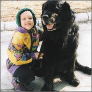 | Любаша Жижина и прототип будущего мультика ньюфаундленд Джерри. Фото Михаила ТУЛЬСКОГО |