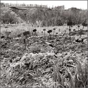 Одно из таких захоронений выглядит так. Огромный холм, напоминающий по внешнему виду ежа, с металлическими столбиками вместо иголок. «Кресты» находятся, не далее чем в полуметре друг от друга. Складывается впечатление, что захоронение многоэтажное. Десятки железных столбиков в беспорядке волялись вокруг «могил». Как в этом случае можно отыскать похороненного?