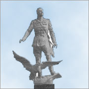 Там, где должна была появиться густоволосатая голова «основателя научного коммунизма», устремится ввысь тринадцатиметровая стройная, будто прокалывающая небо композиция. И в то же время бронзовая скульптура, как картина, вписывается в портал стоящего позади дворца. Трижды Герой Великой Отечественной, Покрышкин будет изображен молодым, тридцатилетним, в расцвете сил и воинской славы. В полевой форме, с орденами на груди. У ног его орел с распростертыми крыльями, что не только делает скульптуру почти летящей, но навевает массу ассоциаций. Как заметил в нашем разговоре главный художник города Юрий Бурика, «летал он лучше, чем птицы». Нетрадиционный образ, торжественный и в то же время какой-то очень по-человечески близкий. Наш земляк из тех редких людей, слава которых никогда не омрачается какими-то домыслами, догадками, но и не превращается в железобетонный скучный монолит. А с годами делается все более даже как бы родственной, понятной... Мы можем гордиться, что Покрышкин - наш земляк.