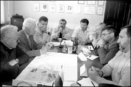 Чтобы окончательно прояснить ситуацию с парковой зоной и ее дальнейшей судьбой, мы пригласили в редакцию для обсуждения авторов обеих статей, а также депутата горсовета, хорошо знакомого с этим вопросом, Н. А. Тямина и экспертов - главного архитектора города В. П. Арбатского и архитектора Ленинского района О. В. Старикова. И вот какой вышел разговор: